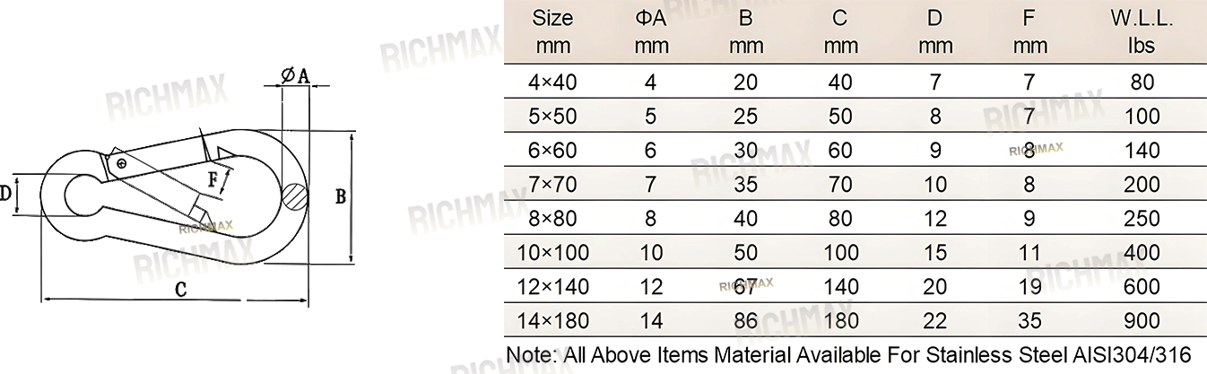 Manufactured to comply with DIN5299 Form C standards, this snap hook guarantees precise dimensions, safety, and compatibility with international industrial applications.