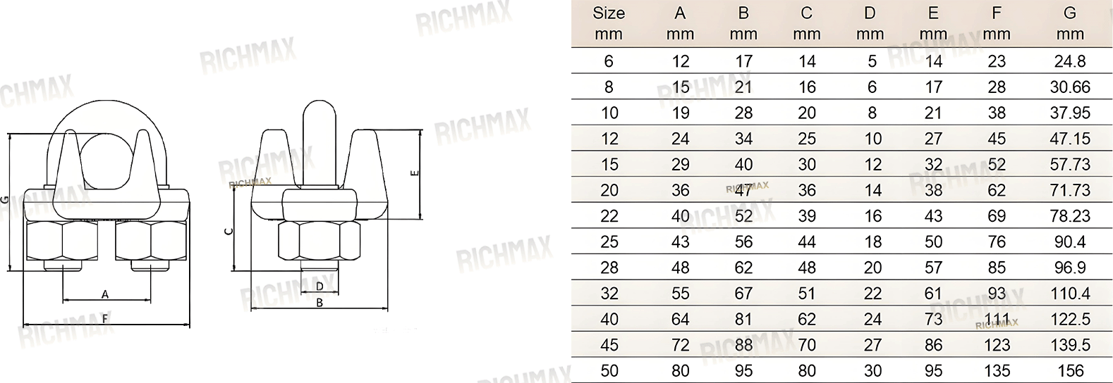 Type A Malleable Wire Rope Clip are designed to offer optimal security and stability in steel wire rope terminations. Manufactured from durable malleable iron and hot-dip galvanized for corrosion resistance, these clips are ideal for various rigging and load-bearing tasks.