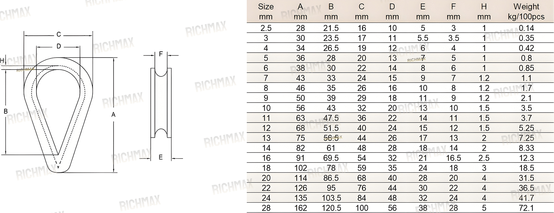 Size: 2.5mm - 28mm