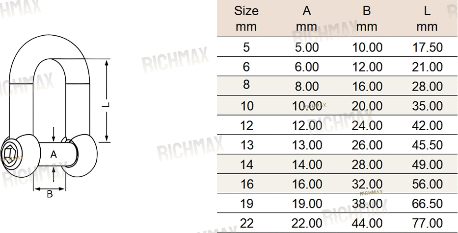 Stainless Steel Flush Pin D Shackles Socket Hex Head