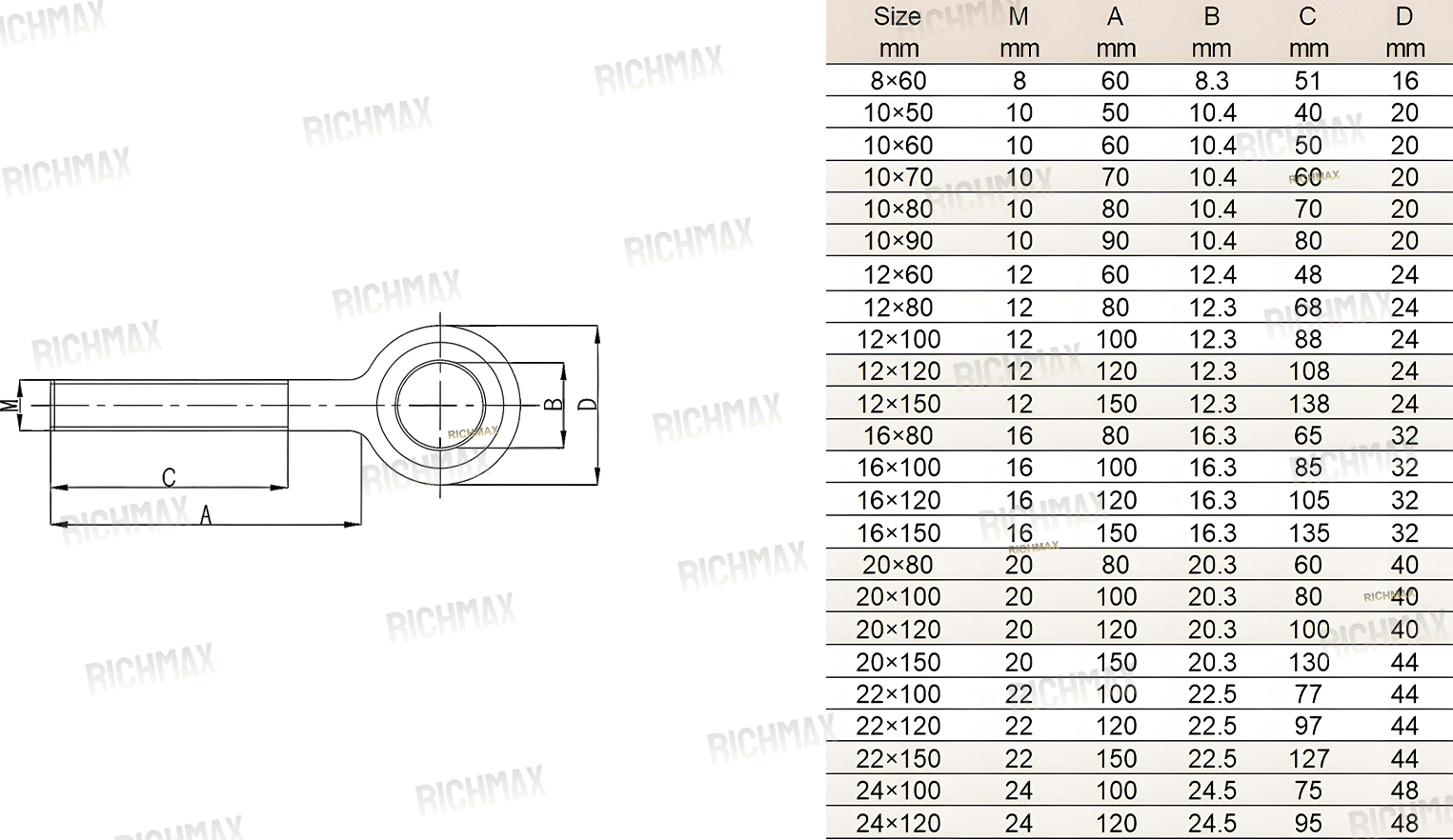 Sizes: 8×60mm – 24×120mm