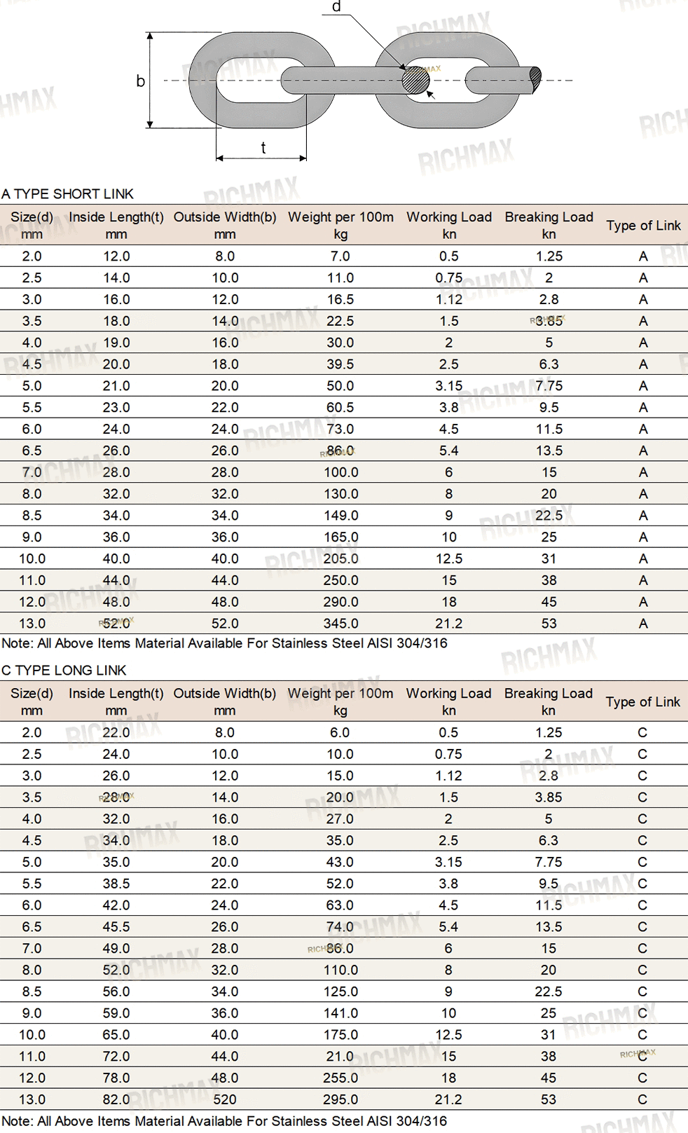 Stainless Steel DIN5685 Link Chain
