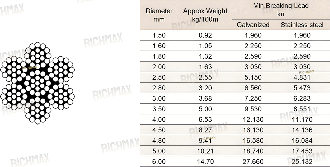 Applications: Marine and yacht rigging, Lifting and hoisting systems, construction, Industrial machinery and cable assemblies, Outdoor sports, gym equipment, safety barriers,Fishing gear and netting lines