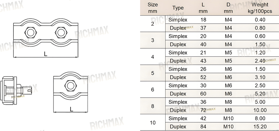 Type: Simplex clip, Duplex clip