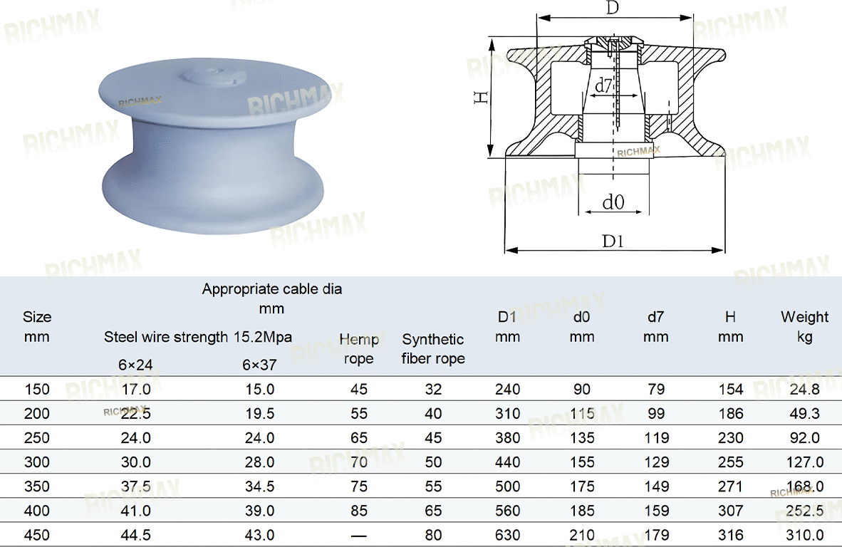 Suitable Rope: Steel wire rope, Synthetic fiber rope