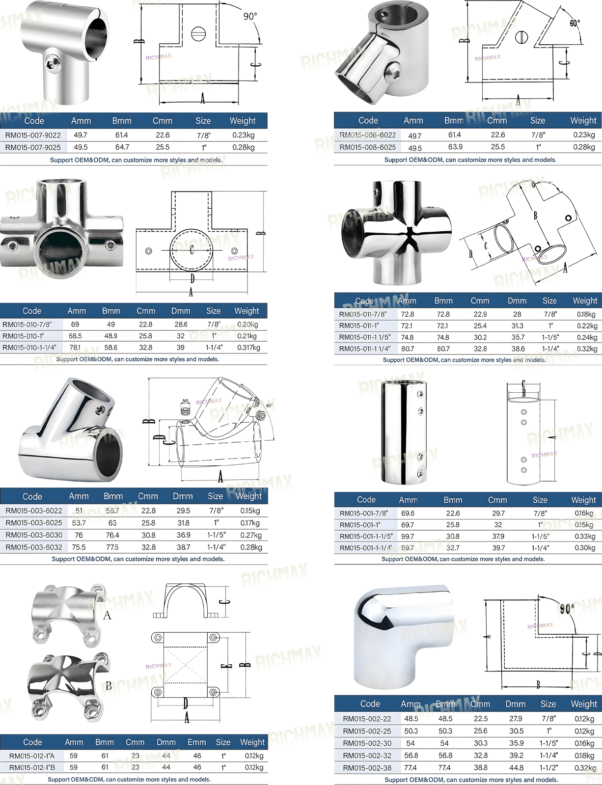 Application: Boat rail systems, Marine hardware installations, Tube connections, Ideal for handrails, bimini tops, canopies, Frame structures