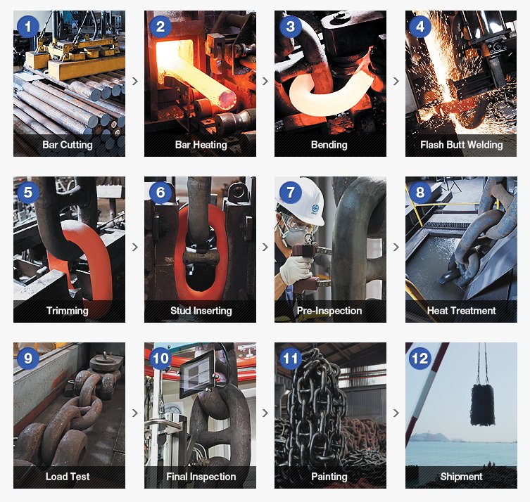Mooring chains must comply with strict international standards to ensure safety and reliability: