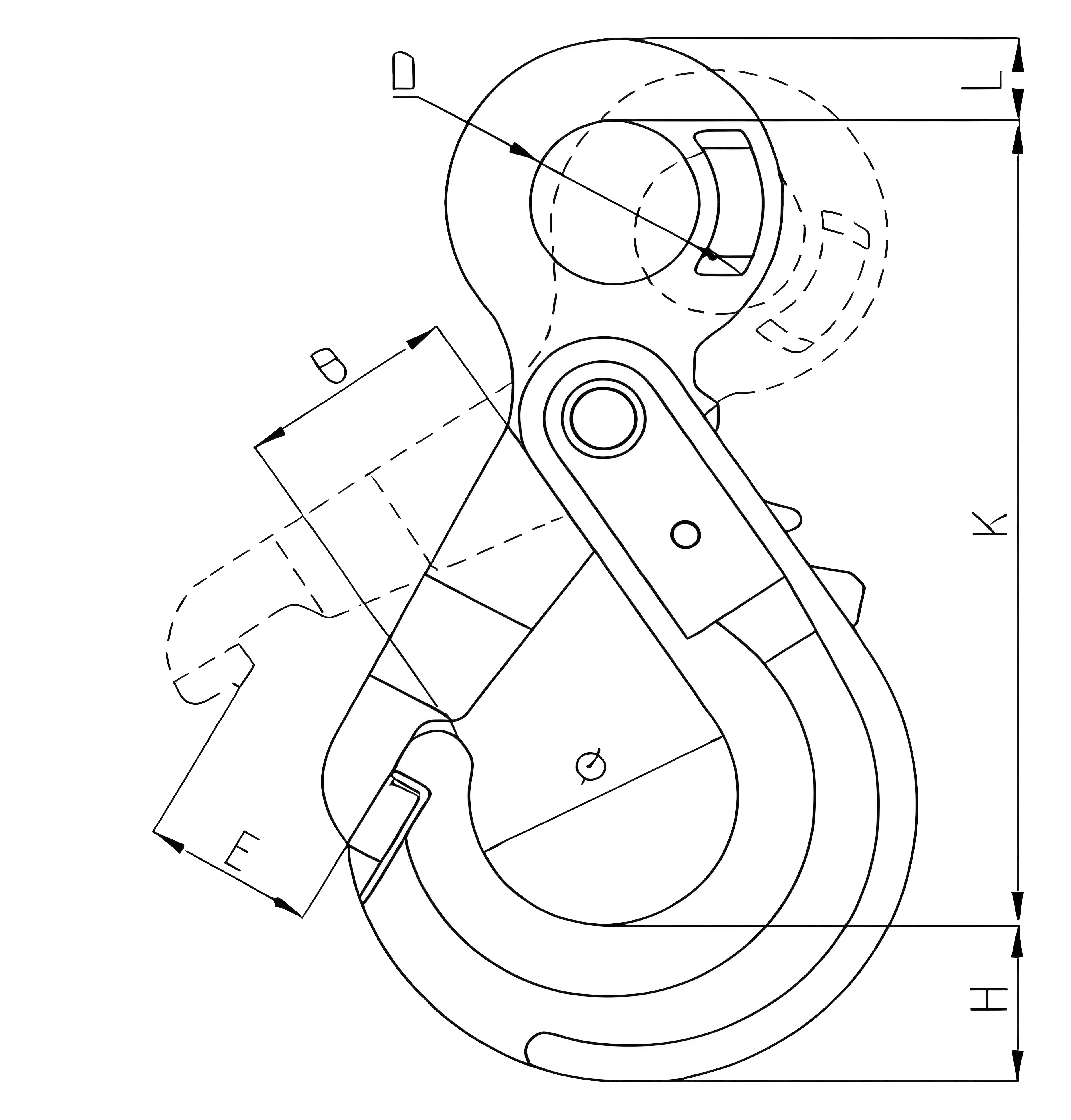 Note: Positive lock latch is Self-Locking when hook is loaded