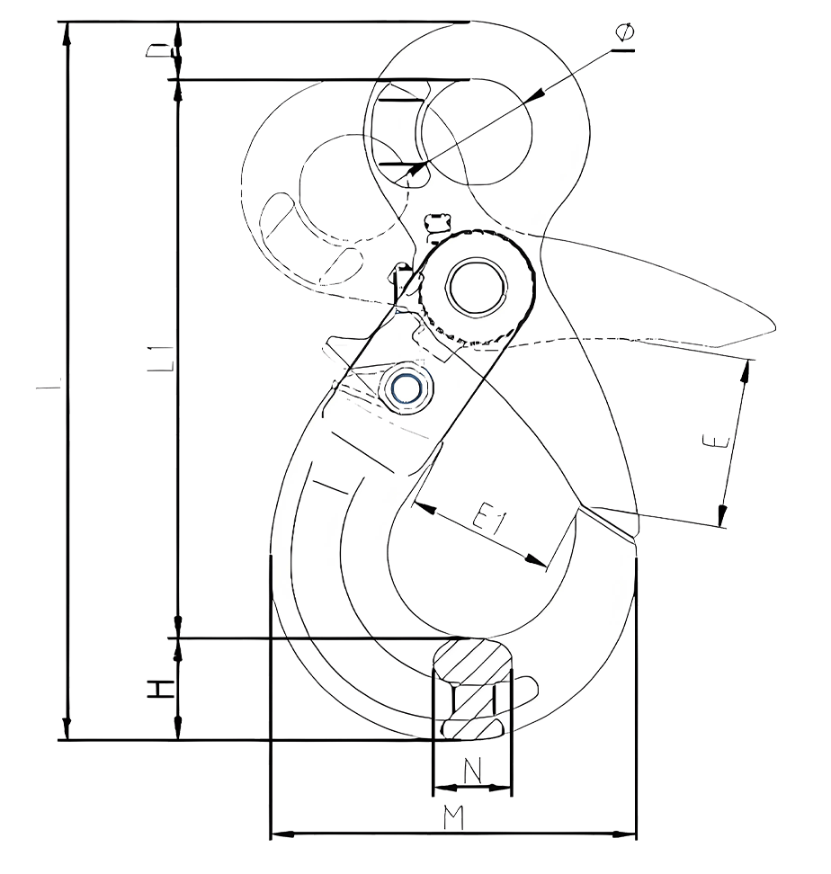 Note: Positive lock latch is Self-Locking when hook is loaded