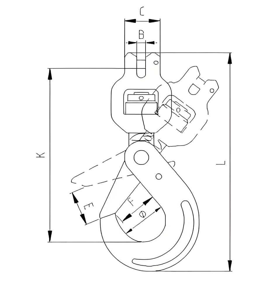 ◆ Positive lock latch is Self-Locking when hook is loaded