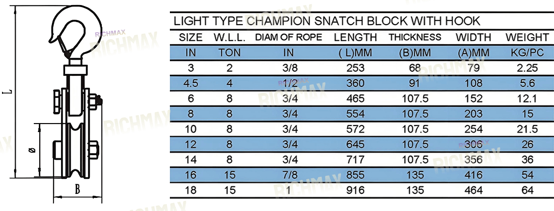 Light Type Snatch Block With Hook