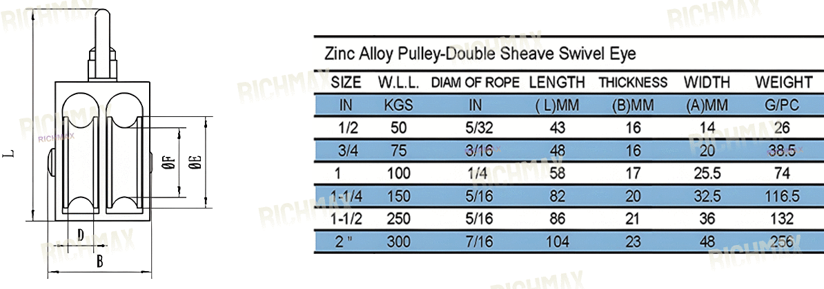 Zinc Alloy Pulley Double Sheave Swivel Eye