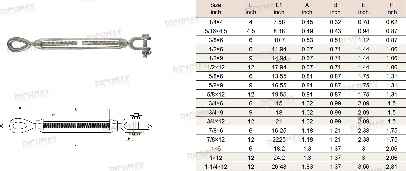 Stainless Steel U.S. Type Turnbuckle Jaw/Eye