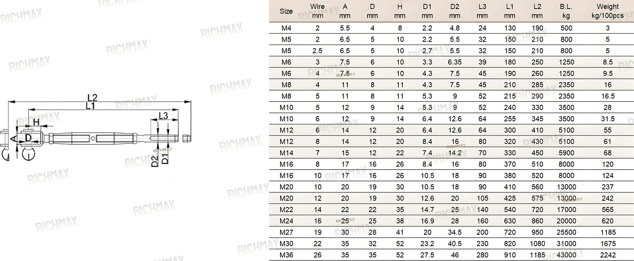 Type: Closed body turnbuckle