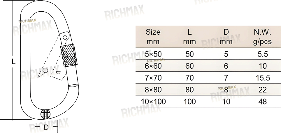 Aluminum D-Type Safety Lock Snap Hook