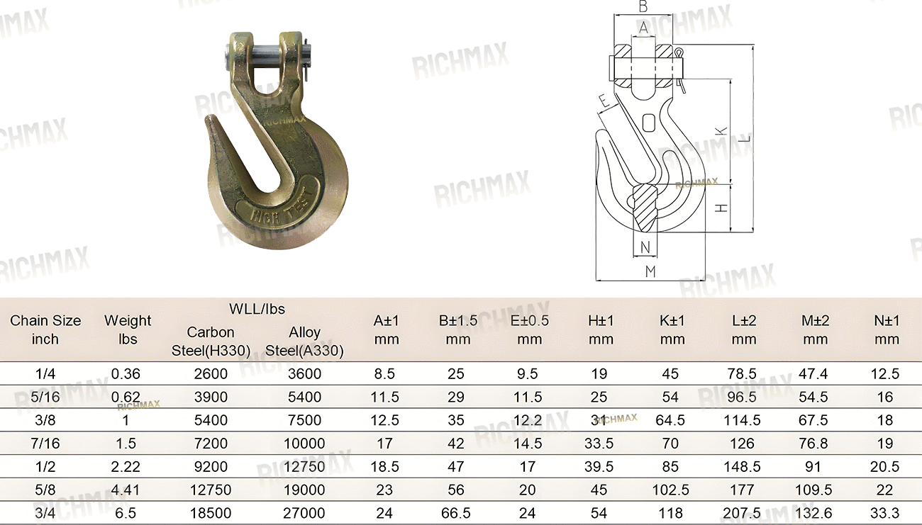 The Clevis Grab Hook is engineered for lifting, securing, and shortening chain assemblies with maximum reliability. Featuring a strong clevis pin connection, this Clevis Grab Hook ensures easy attachment and stable performance under heavy loads.