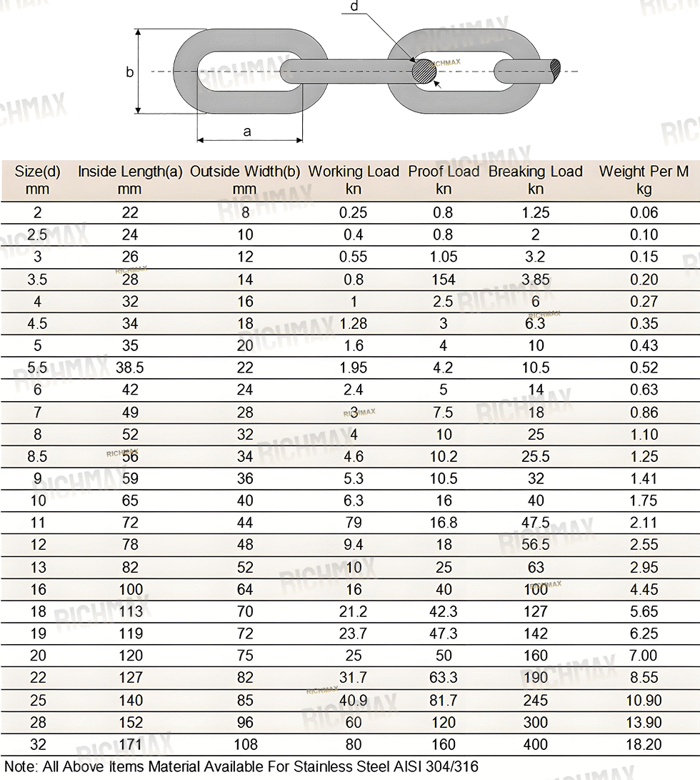 Widely used in material handling, marine hardware, and cargo securing, this chain offers uniform link dimensions and smooth operation.