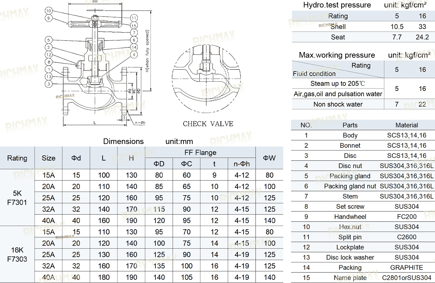 JIS F7301/JIS F7303 Marine Bronze Globe Valve 5K/16K