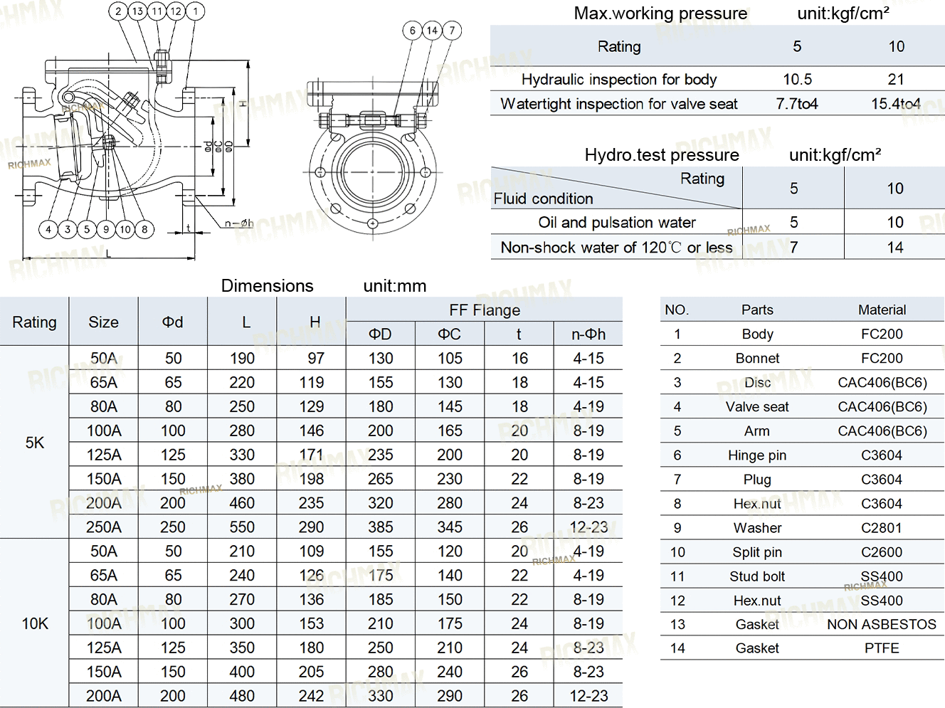 JIS F7372/JIS F7373 Marine Cast Iron Swing Check Valve 5K/10K