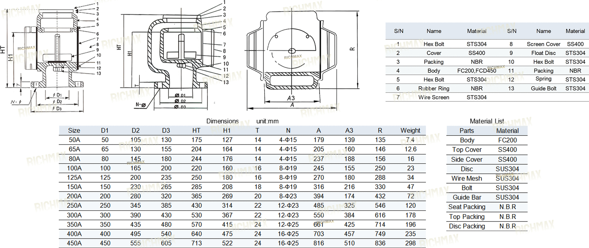 Nominal Diameter: 50A-450A