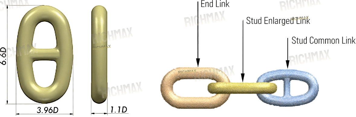 The Enlarge Link is specifically designed to connect anchor chains of different diameters or grades, ensuring smooth power transmission and enhanced mooring safety in both offshore and harbor conditions.