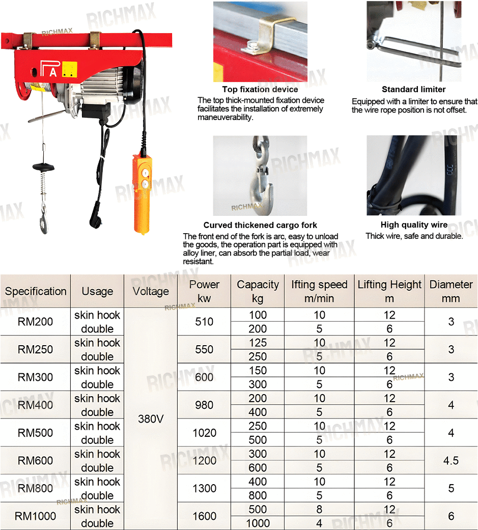 Equipped with precision motor and gear systems, the hoist ensures smooth, safe, and efficient lifting and lowering of heavy loads with minimal effort.