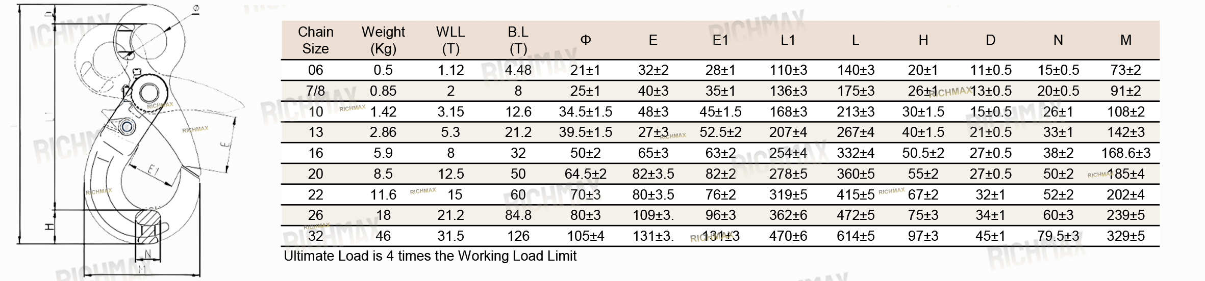 Designed with an automatic locking mechanism, it prevents accidental disengagement during lifting operations, making it a preferred choice for chain sling systems, overhead lifting, and industrial rigging applications.