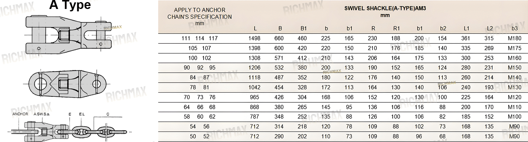 We supply swivel shackles in various sizes to match different anchor chain diameters and marine equipment specifications.