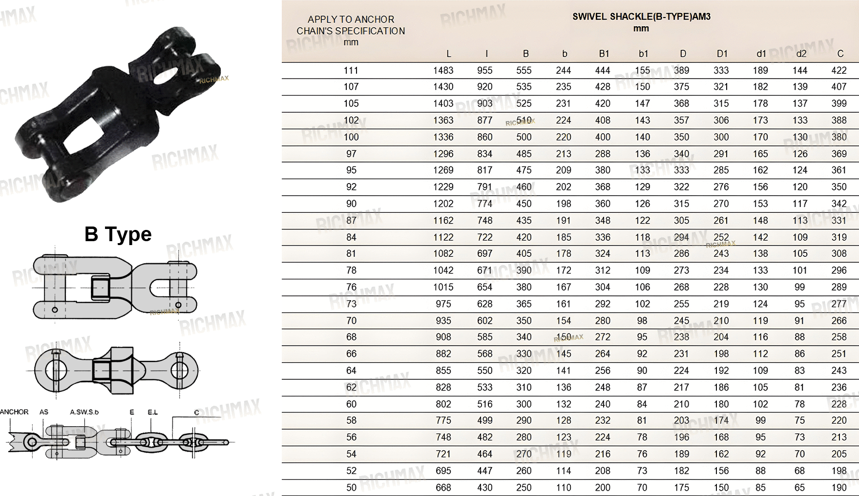 The swivel mechanism allows free movement, reducing chain twist and improving operational safety during anchoring and mooring.