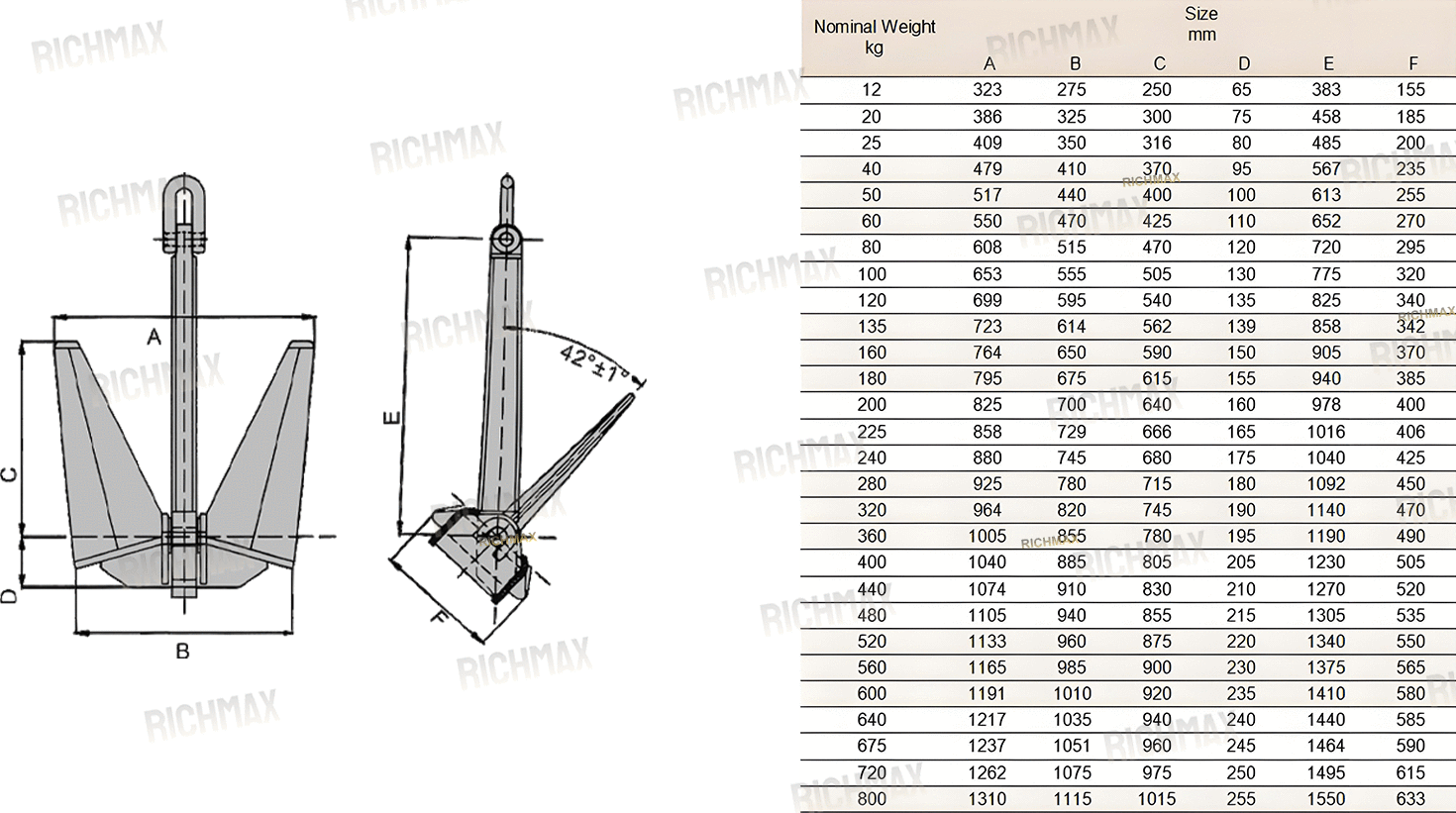 Available in weight ranges from 12 kg to 35,000 kg, meeting the anchoring needs of container vessels, oil tankers, and offshore supply vessels.