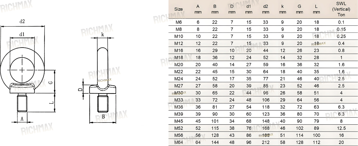 Available in C15 carbon steel, AISI 304, and AISI 316 stainless steel with working load limits from 0.1Ton to 20Ton.