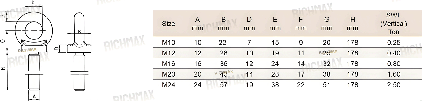 Our BS4278 Long Shank Eye Bolts strictly conform to BS4278 specifications and international safety requirements, ensuring dimensional accuracy and tested load performance.