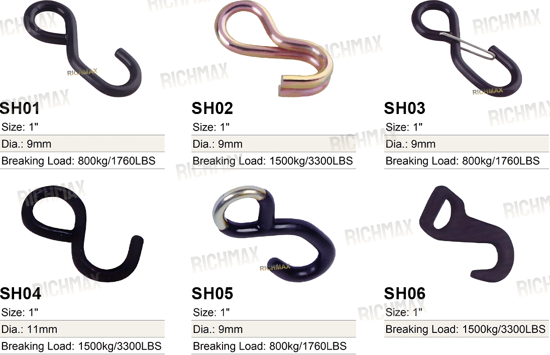 Designed for universal usage, the S hook fits a wide range of tie-down straps, cargo belts, bungee cords, and transport lashing systems on trucks, trailers, and containers.