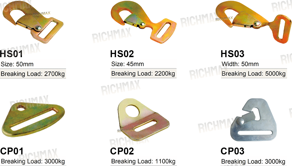 Application: Ratchet tie down straps, cargo lashing systems, Towing straps, Trailer, truck, and container load securing