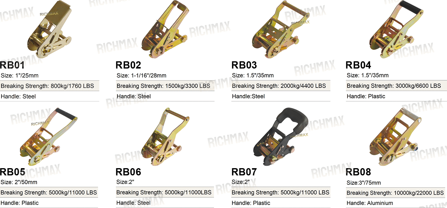 Available in various sizes (25mm / 35mm / 50mm / 75mm) to fit different tie down strap systems used in trucking, logistics, marine cargo, warehouse securing, and heavy machinery transport.
