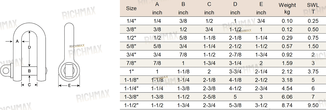 The Dee-shaped body provides strong axial load handling, making it ideal for straight-line lifting, towing, and mooring applications. Its narrow profile ensures secure attachment to chain links and lifting eyes.