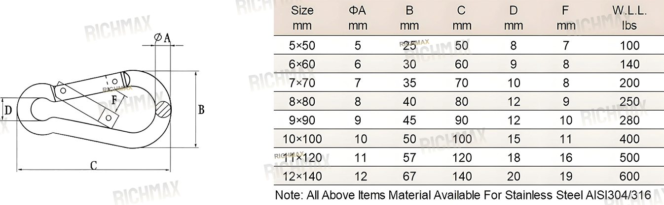 Equipped with two rivets, this snap hook provides enhanced strength and stability, ensuring safe and secure fastening for various applications.