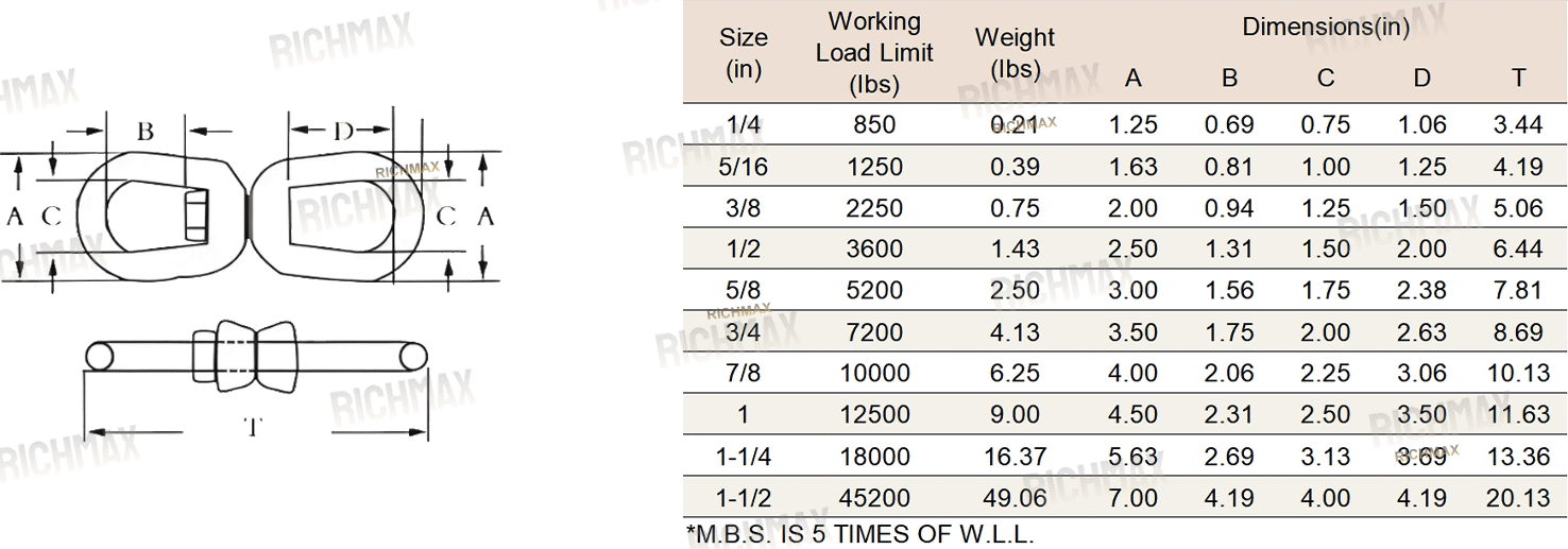 The U.S. Type Regular Swivel G402 is manufactured from forged carbon steel, providing outstanding strength, durability, and long service life.
