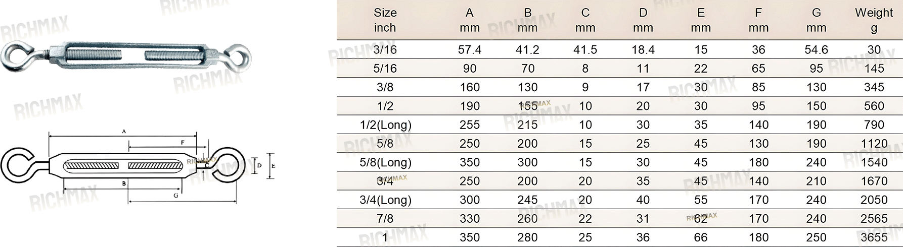 Type: Open body turnbuckle