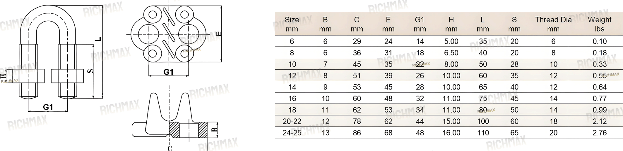 Each wire rope clip is drop-forged for superior tensile strength, offering greater mechanical reliability under heavy loads.