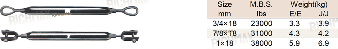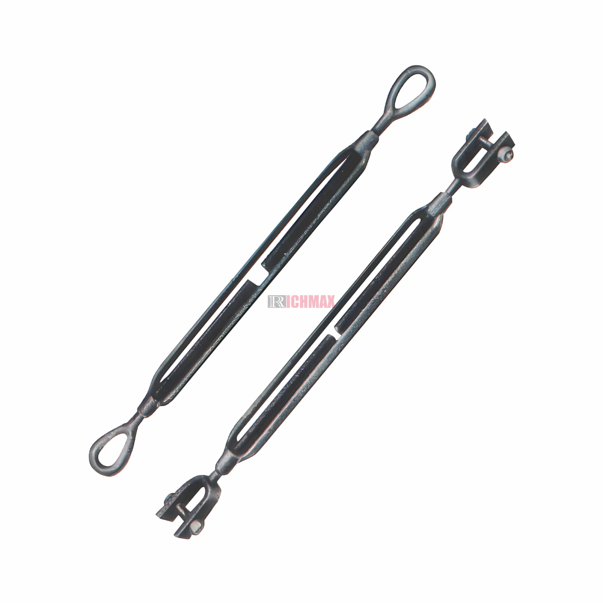 The U.S. Type Split Body Turnbuckle features a midsection that allows easy tensioning and two threaded end fittings—either eye or jaw style. Made from galvanized or painted steel, the turnbuckle resists corrosion and supports safe load transfer in lifting or structural systems.